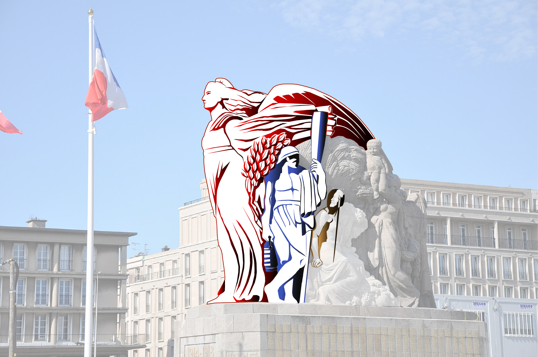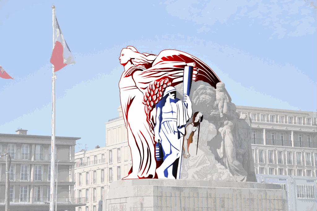 J’ai entrepris de recréer en dessin vectoriel le Monument aux morts et à la Victoire de Pierre-Marie Poisson, installée depuis 1924 sur la place Gambetta, Ce monument a été créé pour célébrer les morts de la guerre 14-18 et comprend aussi ceux des conflits armés suivants.