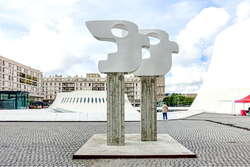 Tout d’abord créée en bois, elle devait être démontée à la fin de l’évènement, mais l’engouement des havrais pour cette structure a été tel, que cela a abouti à sa version pérenne visible aujourd’hui.
