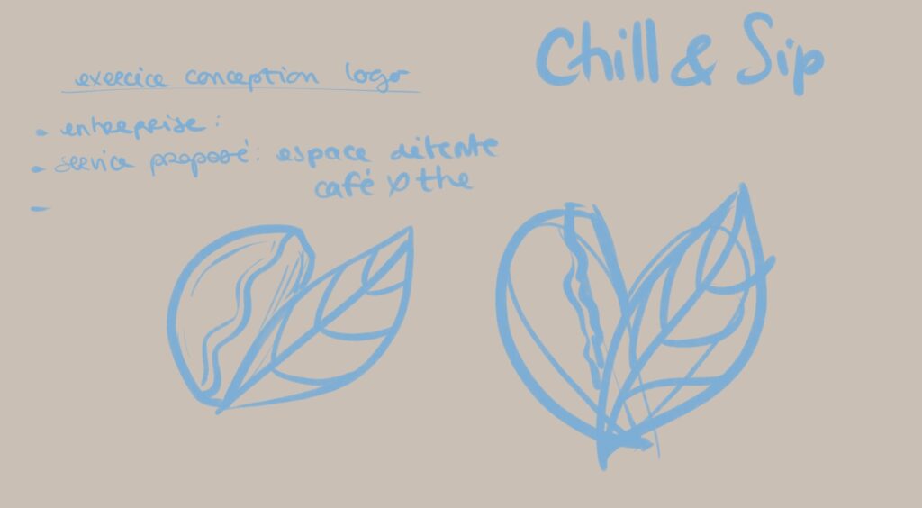 La base de l’exercice était de concevoir un logo pour l’ouverture d’un café. Avec ma binôme, nous avons voulu faire évoluer le concept en café/salon de thé avec une ambiance douce et un espace détente.