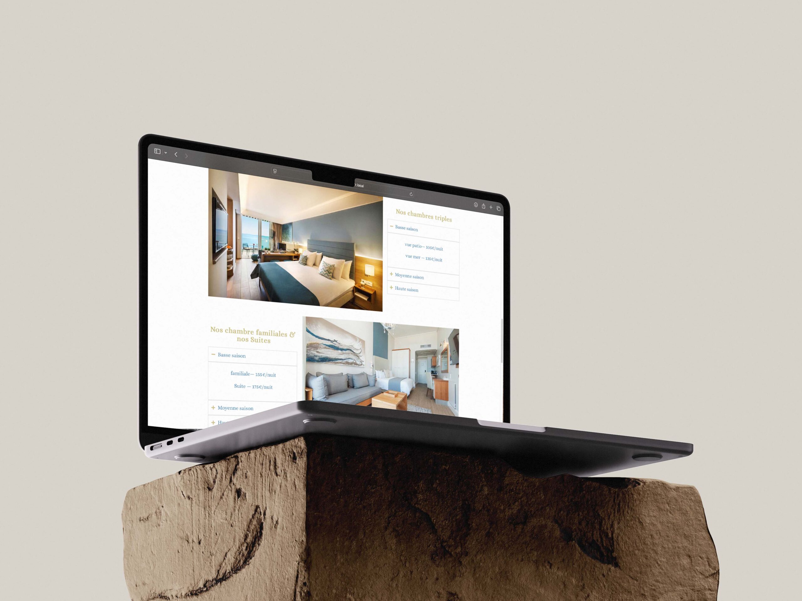 Ce projet était le sujet d’un exercice, celui de faire la refonte de la page d’accueil d’un hôtel existant. Je suis allée plus loin en proposant une nouvelle identité visuelle qui uniformise le site de l’hôtel et lui donne une identité cohérente avec son statut d’hôtel 3*.