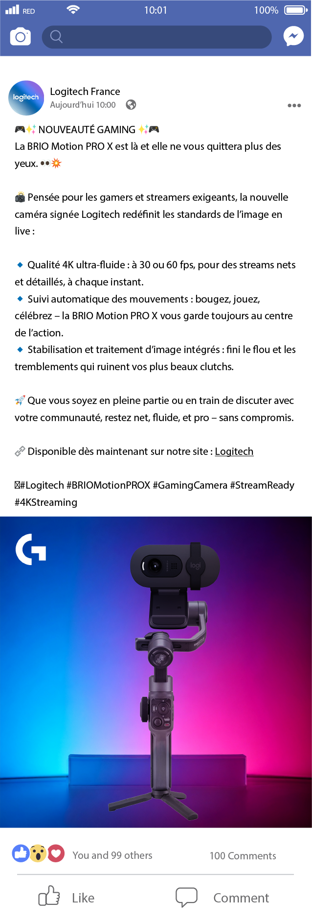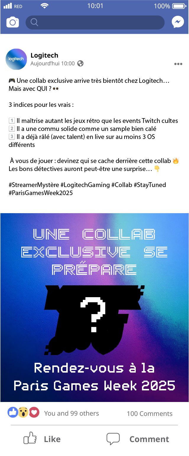 Rédaction et mises en situations de deux posts pour la marque Logitech, l’un pour la sortie d’un nouveau produit de leur gamme gaming, et le second teasant une collaboration avec un streamer pour la Paris Games Week 2025.