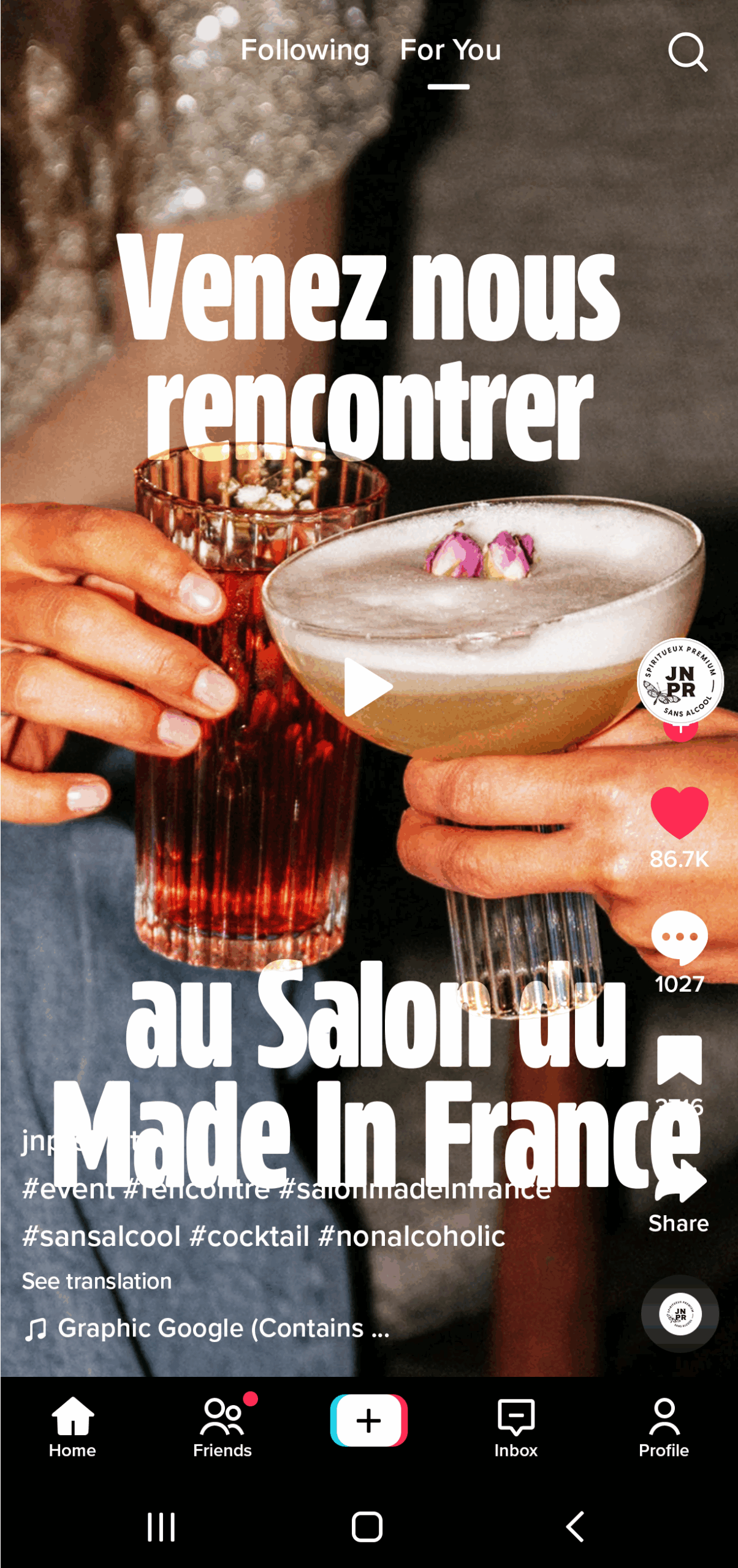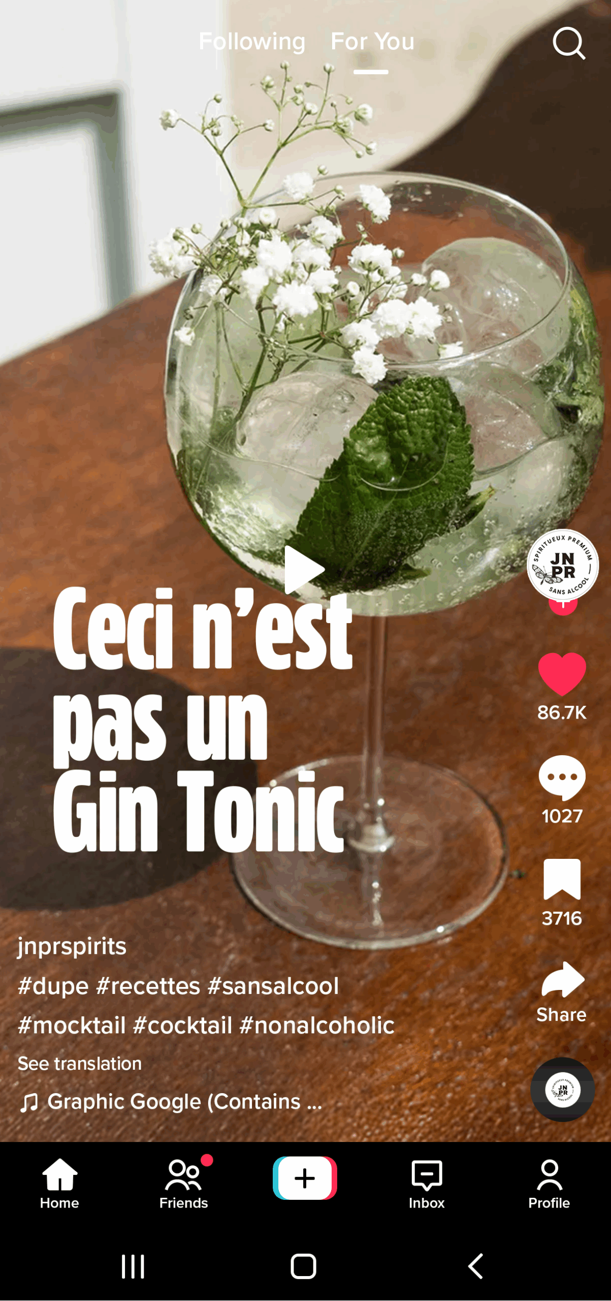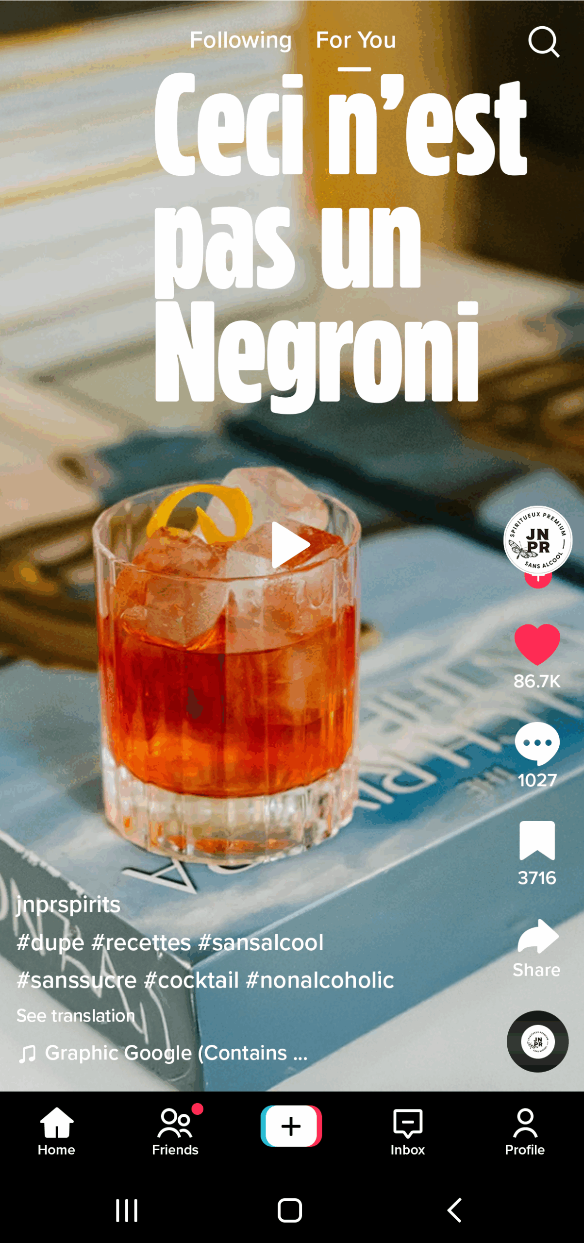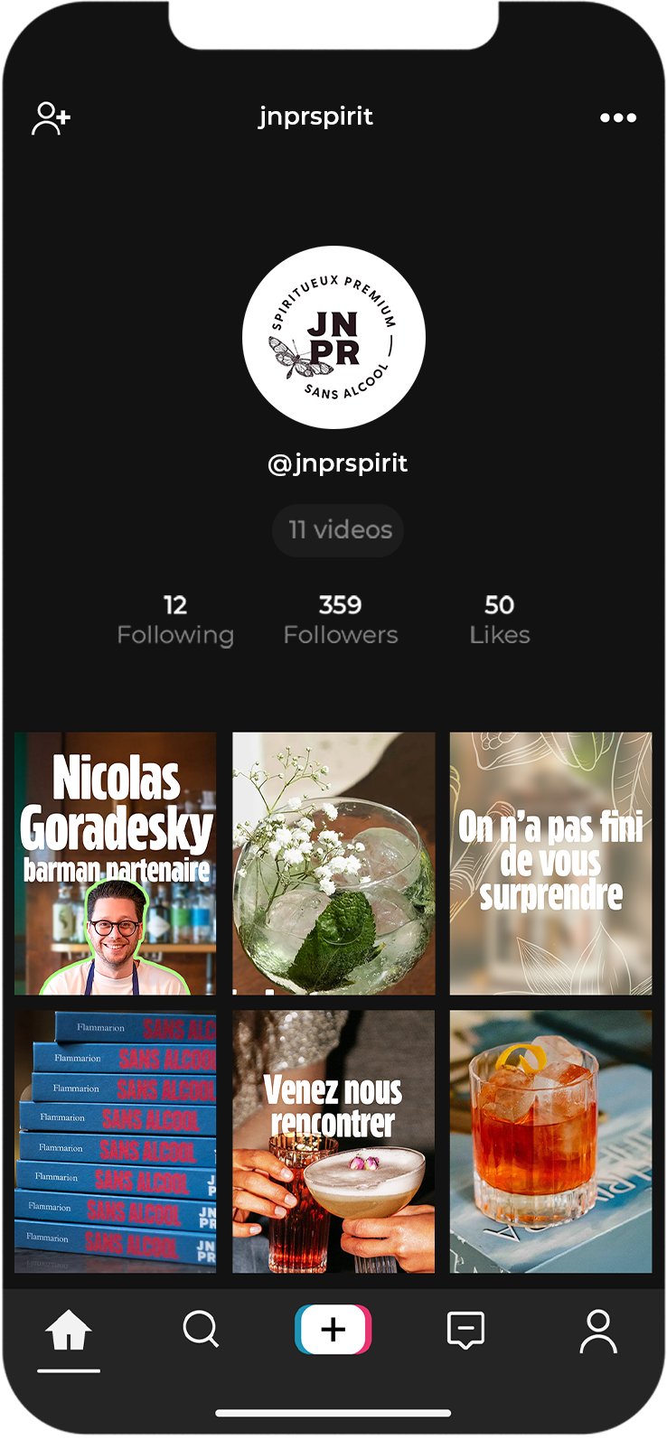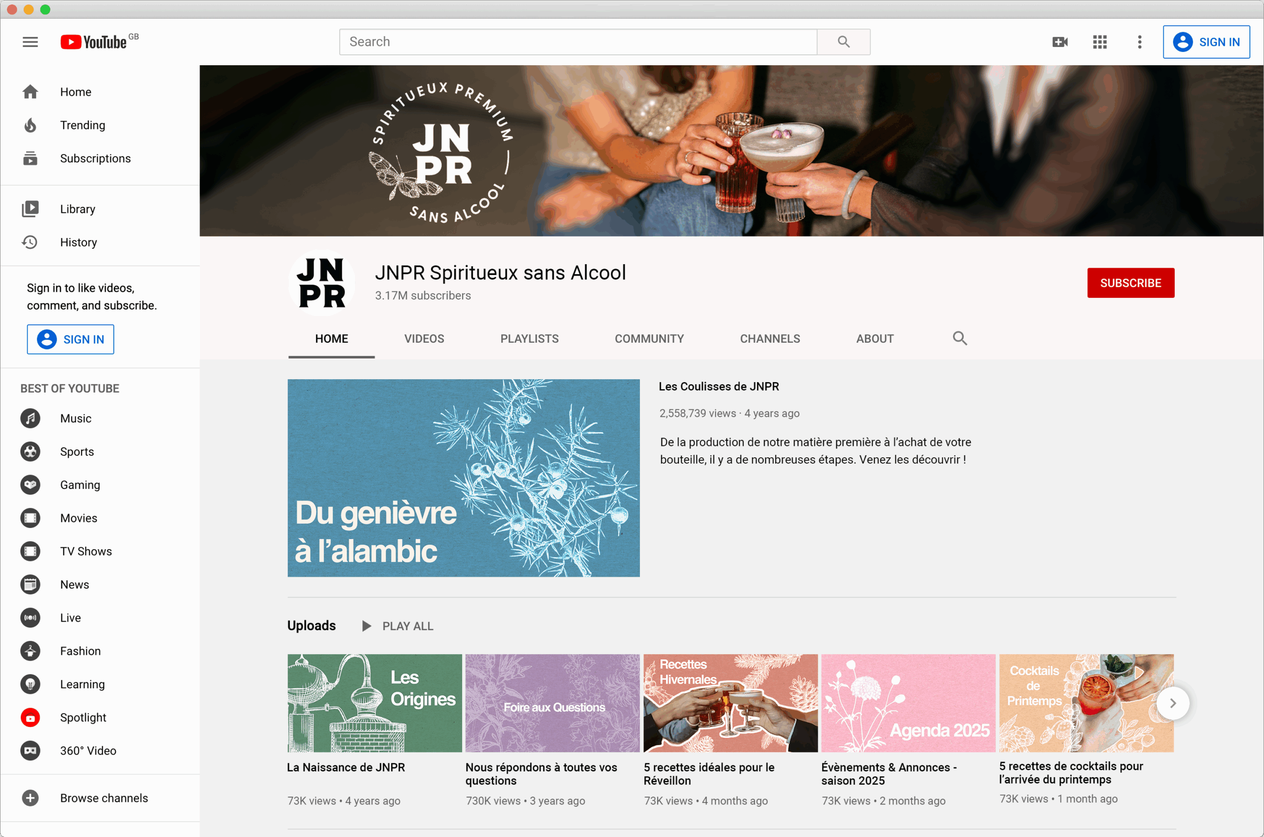 Mise en situation de la page de la marque de spiritueux sans alcool JNPR avec la composition du bandeau et des miniatures.