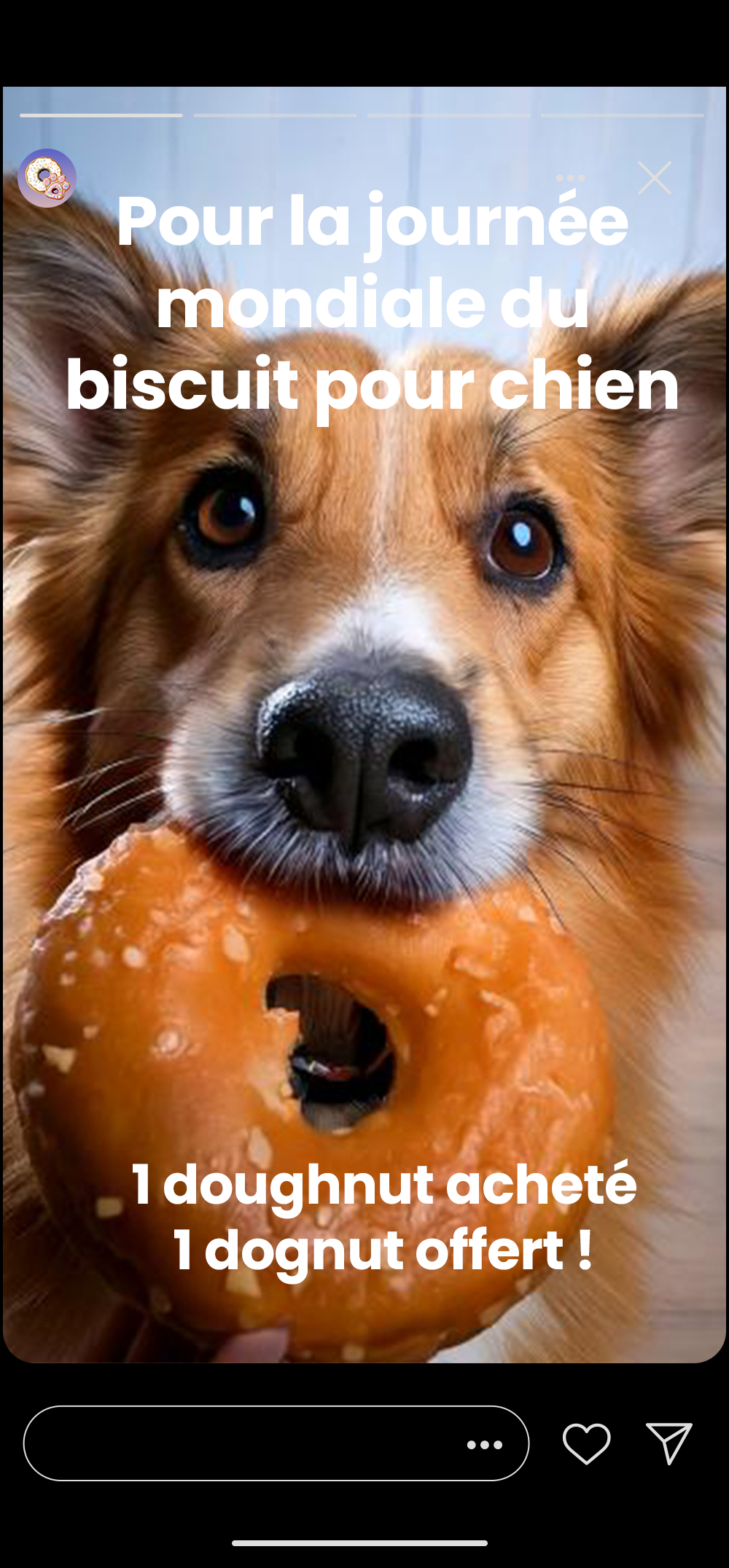 Mises en situations du profil pour la marque fictive Dough’N’Dogs, montrant le profil de la marque et deux types de posts (concours, story) mettant en avant les valeurs de l’entreprise.