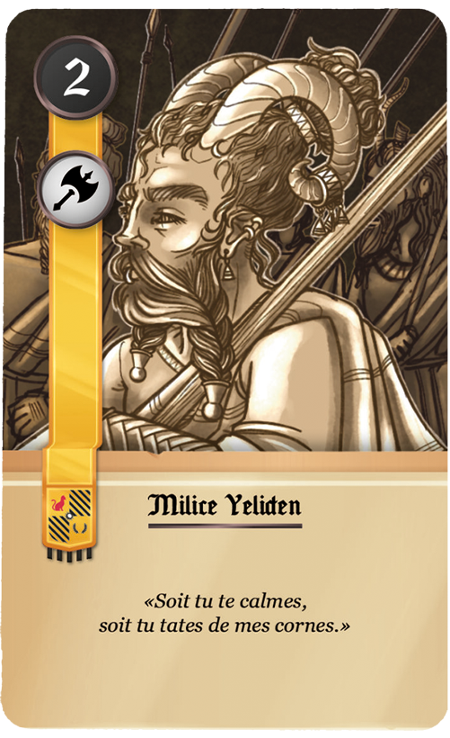 Le système de jeu s’inspire de celui du gwent de l’univers de The Witcher, et les différents decks sont composés à partir des 70 cartes à la rareté variable. Certaines n’était disponible qu’à certains endroits ou grâce à certaines actions en jeu.